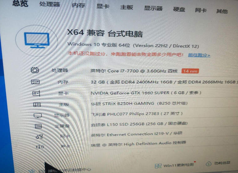 主板i7-7700,显卡1660的32G, 配置挺高